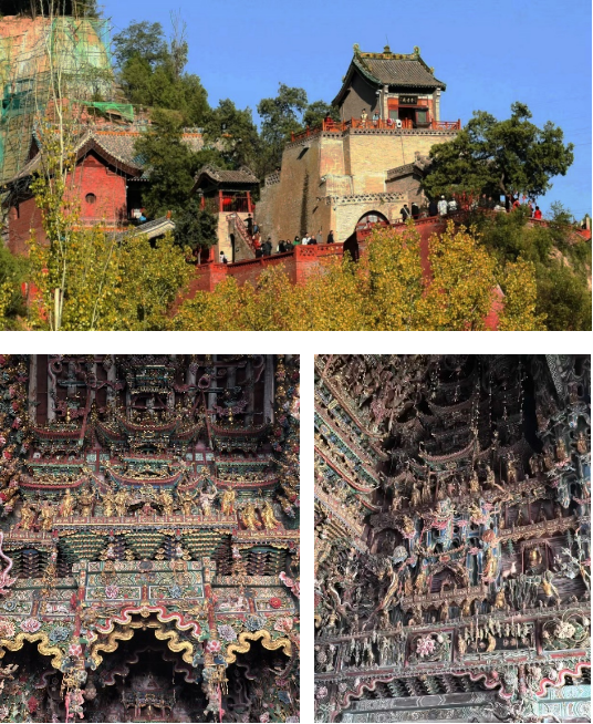 师生们通过对“小西天”古建筑群的布局、结构、装饰等观察分析,结合讲解员的解读,对该建筑群三面环山的选址,坐西朝东、轴线清晰的格局,重楼叠阁、以山布景在设计上的精妙之处等都有了较清晰的认知。令同学们感触最深的建筑景观是近期《黑神话:悟空》游戏取景地——大雄宝殿。大雄宝殿的悬塑,虽历经400年风雨沧桑依旧完整如新,被称为“中国悬塑艺术之绝唱”。
