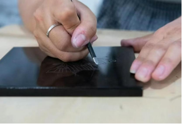 有了理论基础,江文开始指导参训学员深度体验中国传统漆艺中髹饰技艺——戗金技法与蛋壳镶嵌技法。