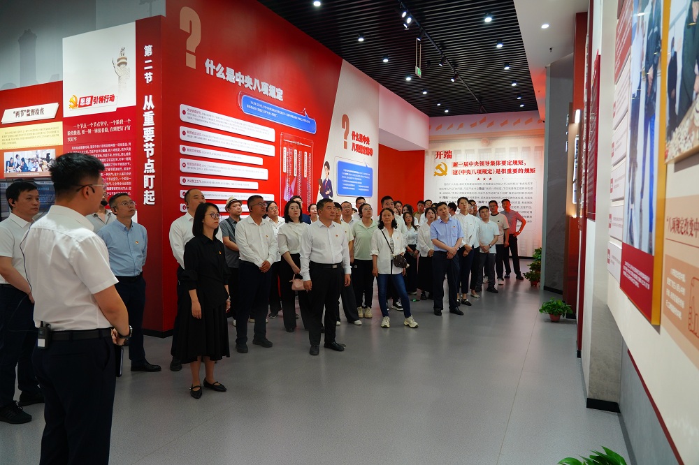 在讲解员引导下,全体人员依次参观“铁规矩、金名片”“纠四风、治顽疾”“好作风、新征程”三大主题展区。展览综合运用弧幕投影、场景复原、互动查询等现代展陈技术,系统呈现党的十八大以来全面从严治党战略的实践伟力,生动展现我省贯彻落实中央八项规定精神、驰而不息正风肃纪的攻坚历程。展墙上一份份触目惊心的案例剖析、屏幕上一段段声泪俱下的忏悔实录、展柜里一组组发人深省的违纪数据,构成直击心灵的警示教育课堂。党员干部时而驻足凝视违纪违法人员手写忏悔书,时而低声交流作风建设典型案例,在正反对比中深化对“作风建设永远在路上”的政治自觉。
