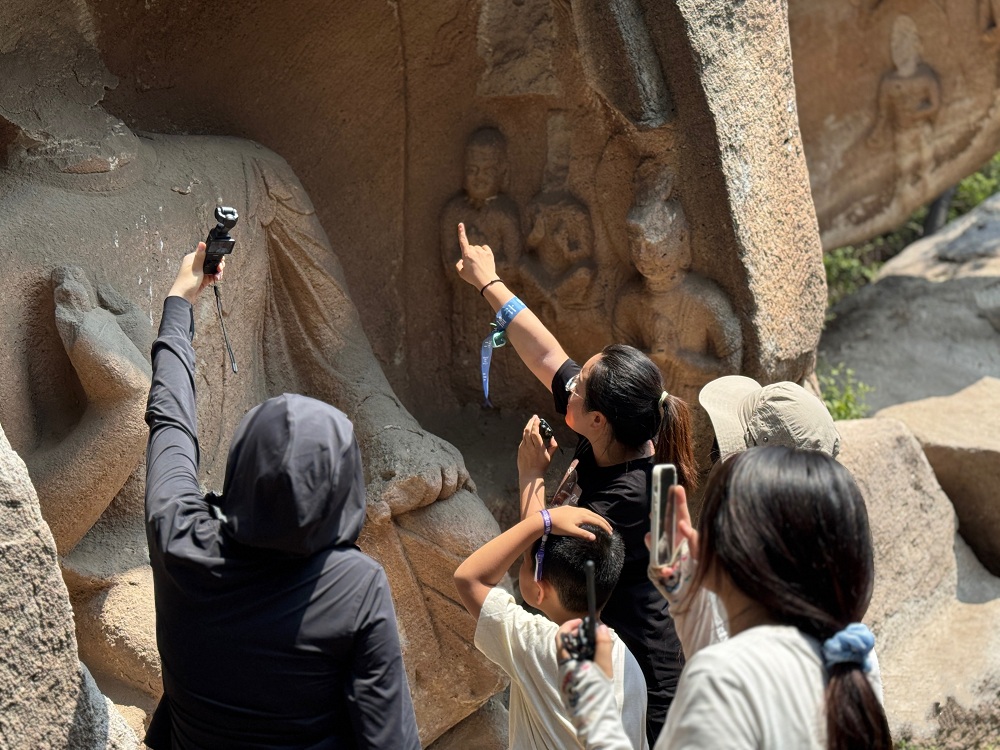 文保2102及员工尹晓阳说:“专家讲解让我意识到石窟面临的挑战,如气候变化导致的风化和损坏。石窟的水渍和裂缝见证了文化遗产的脆弱。这次经历让我决心成为气候变化遗产的守护者,保护这些文化瑰宝。“