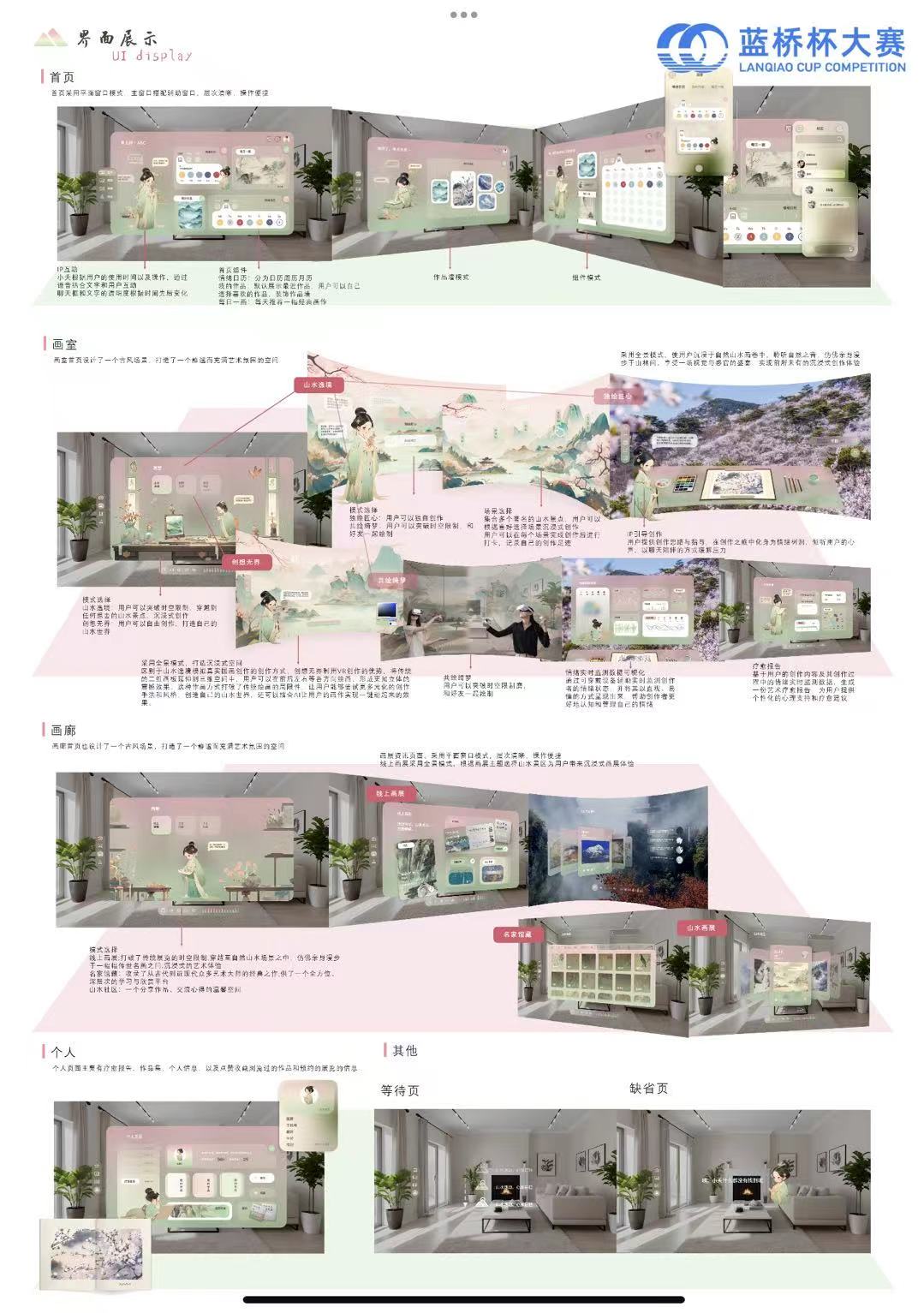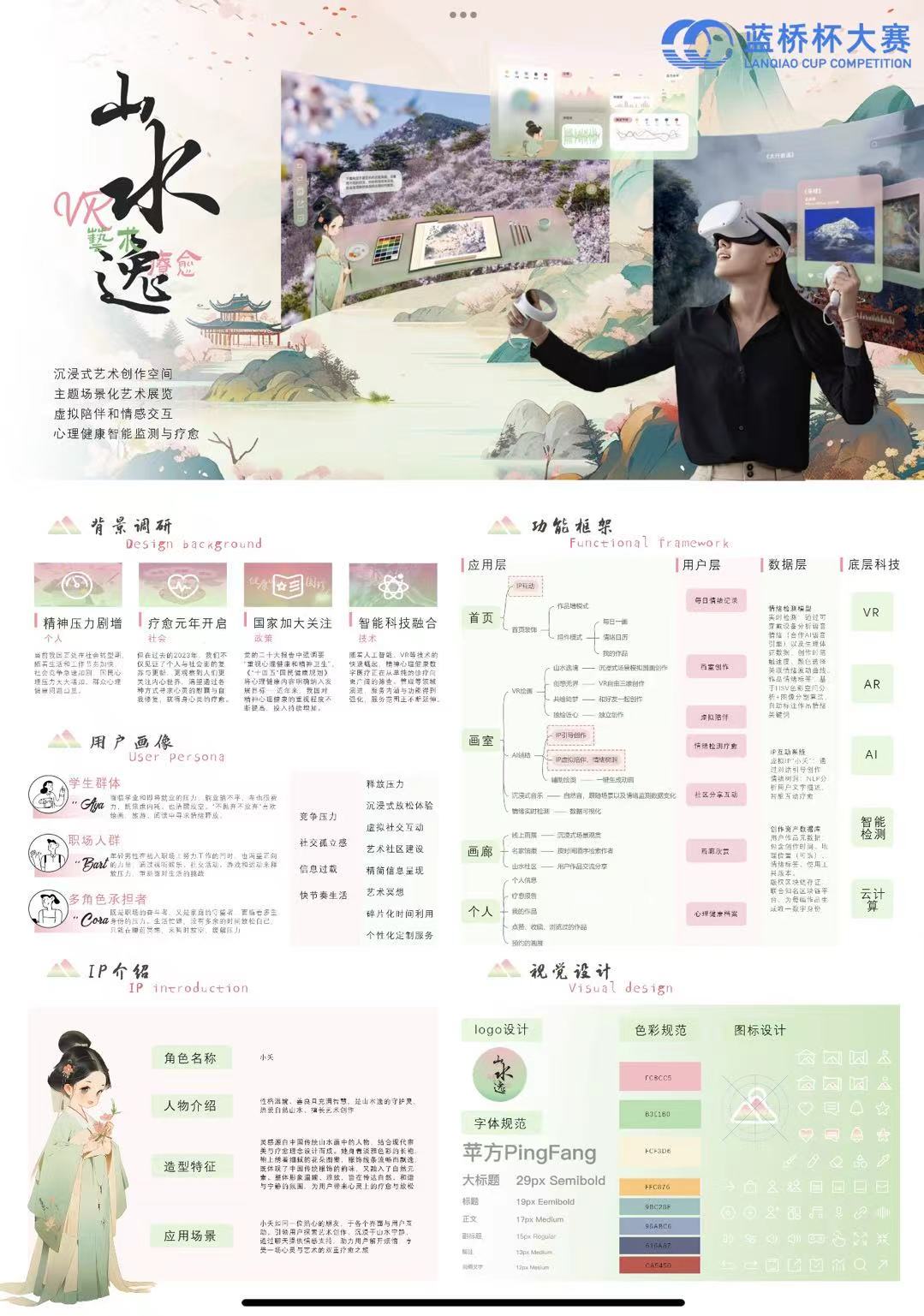 获奖作品涵盖交互设计、插画设计、视频设计、环境艺术、文创产品、海报设计、包装设计等多个赛道,其中,由李霞霞、张琳老师指导,翟娜、王钟崎、周琳博同学完成的《山水逸——中国传统山水画艺术疗愈VR界面》(交互设计-非命题),以及由赵娟老师指导,李向慧同学完成的《晋序四时》(插画设计-非命题)荣获国家级一等奖,体现了公司在传统文化数字化创新与视觉表达方面的领先水平。