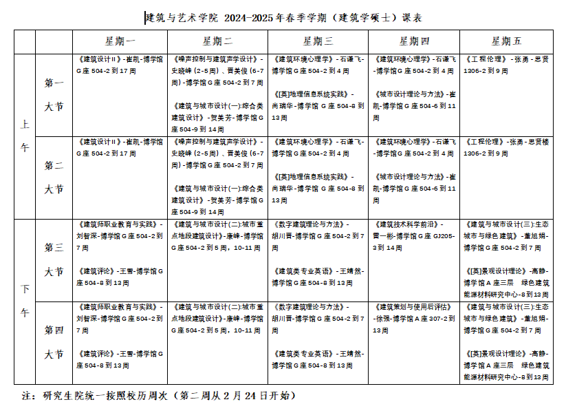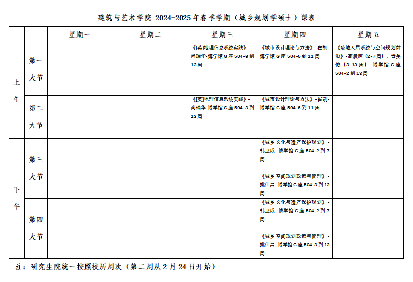 PA捕鱼官方网站 2024-2025年春季学期(硕士)课表