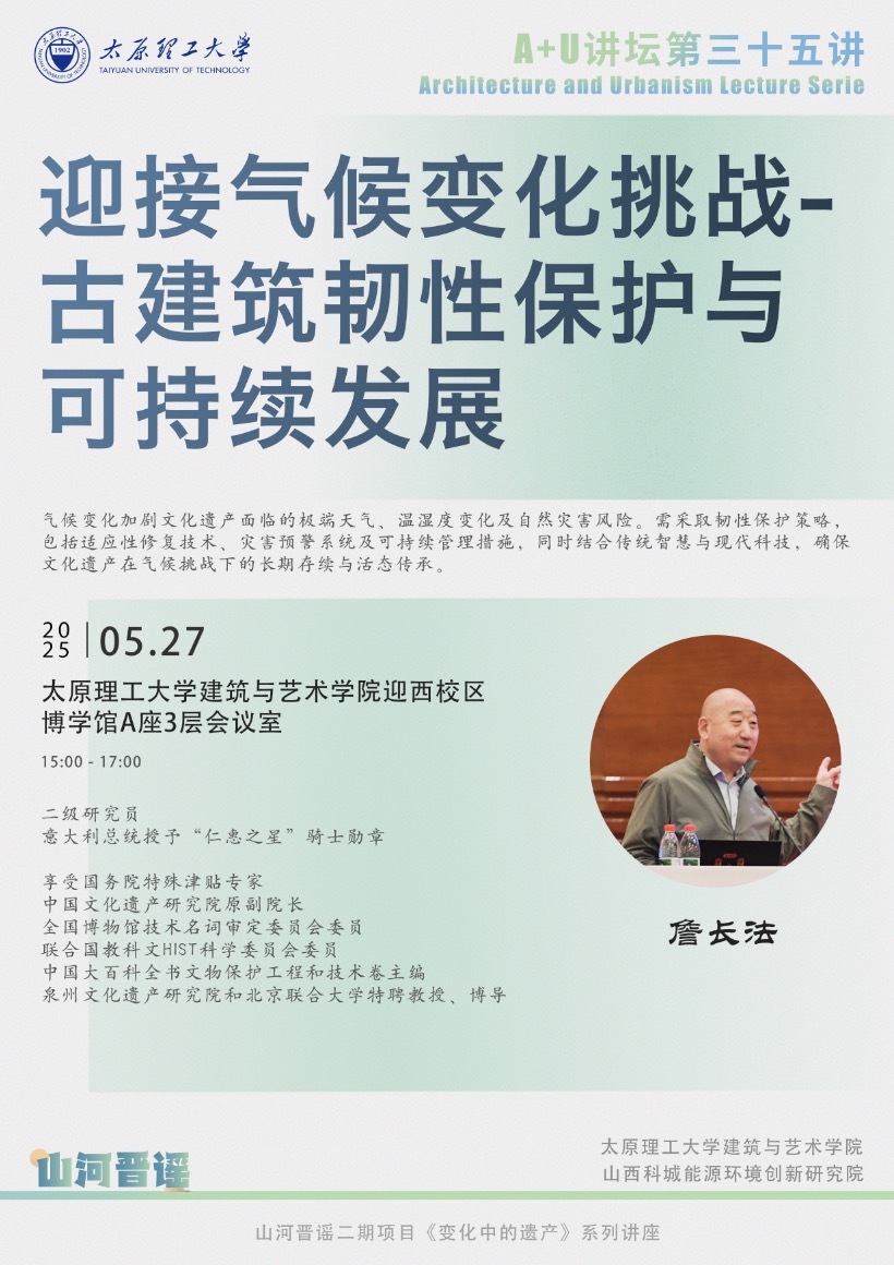 5月27日下午,中国文化遗产研究院原副经理、二级研究员詹长法在PA捕鱼官方网站做题为《迎接气候变化挑战-古建筑韧性保护与可持续发展》学术讲座,从专业角度分析了在气候变化的条件下建筑遗产保护利用的途径。气候变化加剧文化遗产面临的极端天气、温湿度变化及自然灾害风险。需采取韧性保护策略,包括适应性修复技术、灾害预警系统及可持续管理措施,同时结合传统智慧与现代科技,确保文化遗产在气候挑战下的长期存续与活态传承。本次讲座具有很强的启发性,师生积极参与互动,一致好评。