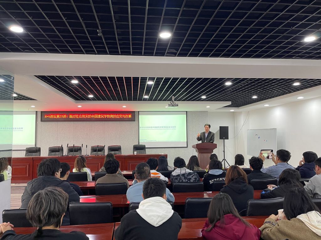 讲座中,王兴田教授结合其在建筑设计与高等建筑教育领域的深厚实践,深入剖析了中国建筑学教育在社会转型背景下面临的挑战与变革路径。他围绕教学体系更新、人才培养模式优化以及建筑教育如何回应社会需求等问题展开论述,提出了多项具有前瞻性的改革设想,引发现场师生的热烈反响与深入思考。